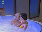 デートの場所はシム州立タワーだ。ここは人が少なく,しかも最上階にはなぜかバスタブが置いてあるという,よく分からない施設。ウェイロンをそこへ呼び出し,お話して,ちょっとじゃれあって,それからバスタブにつかって……。「キスする」を選ぶと,大げさな後光と共に宙に浮かんで口づけを交わす二人。