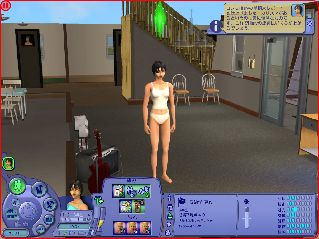 おっと,その前にキャンパスショップへ行って,おデート用の可愛いドレスと,お尻が半分はみ出ちゃっているビキニ,そして,万が一に備え,成人用のセクシー下着などを購入する。さらに鏡を使って髪型なども大人っぽく変える。なにやってんだろオレ? という気もしてくるが,うふふふ,楽しいなあ。
