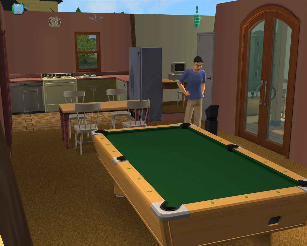 時間がないので,仕方なくDJを雇ったが,雇ったのは気持ちよいほど無能な男。まあ,最も時給が安く,したがって何のスキルも才能バッジも持たないヤツなので,当然っちゃ当然なのだが,ディスコの仕事はこいつに任せて本人は仕事に精を出す,という算段は見事に崩れた。ちょっと働かせるだけで「従業員インジケータ」はすぐ真っ赤になって,やる気なし。仕方なく休憩を取らせると,庭のバスタブで女の子は口説くは,ギターを弾きまくりで戻ってこないわ,で従業員の「管理」も大変な騒ぎである。いっそ「クビ」にしてやろうかと何度も思ったが,ほかの従業員候補者はもっと高給取りなので,貧乏ディスコ(ピンクのゴリラが目印)にはまだ無理だ。おらおら,キリキリ働け,この坊主!