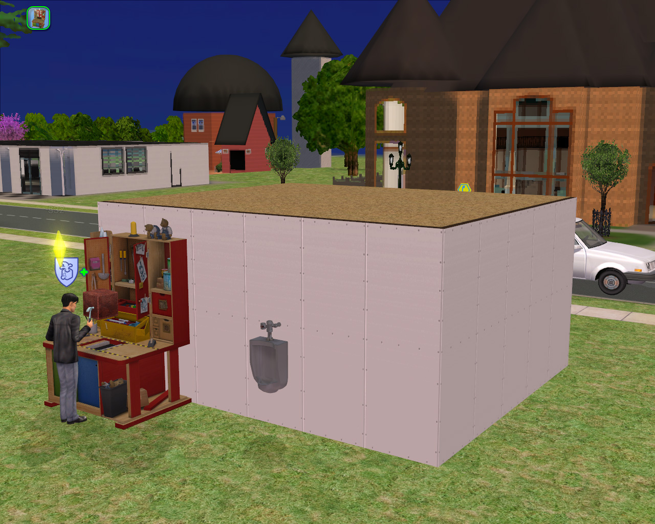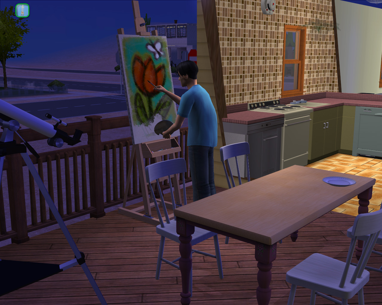 意を決して,ブルーウォーター村にこれ以上考えられない,というほど小さな店舗を買い,おもちゃ屋を開店したのだが,またしても目の回るような忙しさだ。しかも,ディスコ経営で培った商売スキルは新店舗では通用しない(うっそー!)という非情のゲームシステム。新しい店を出せば,また一からやり直しなので,リュウイチは今日も店の外でおもちゃ作りに精を出すのである。いつかは,何十人もの従業員が右往左往するレストランとか,出入り口にお客が列を作るヘアサロンとか,夢は枯野を駆け巡りつつ,一日「ミスターレンガ」が2個売れて70シムオリオンの利益,みたいな日々を送っているのである。