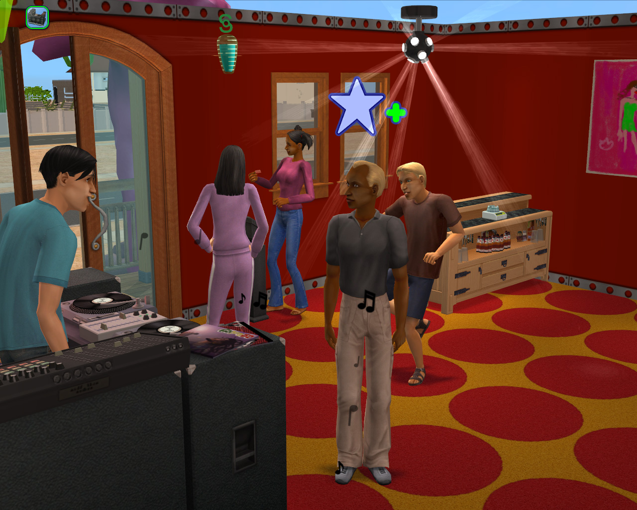 で,ここまで書いてきて気がついたのだが,このディスコ,「ザ・シムズ2」とハッピーショップライフ! だけをインストールしたプレイヤーには使えない作戦。というのも,DJブースは,前データセット「ザ・シムズ2 ホットナイト! データセット」のアイテムだからだ。