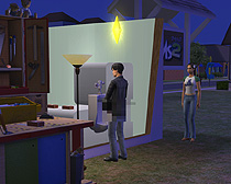 公共区画に店を構える資金もないので商品を庭に並べておいたら,レジ係(本人)が寝ている間に勝手に商品を持ってっちゃうヤツもいて,まさにシム人達の暗い側面を見た,という感じだが,それはこっちが悪いのかいな?