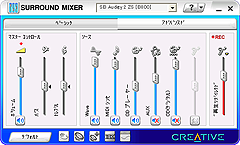 | SURROUND MIXER。意味の伝わりにくいアイコンと,無理矢理縦方向で表示している半角カナが見づらい |