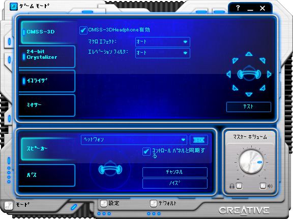 X-Fi DA,EAXモード&CMSS-3DHeadphone有効