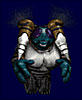 今ではすっかり人口が減ってしまった戦士の種族。彼らは自らをゴアと呼び,プライドが高く,怒らせると大変凶暴。しかし,基本的には規律正しく自制心が強い。防衛や治安維持の仕事に能力を発揮する。規律と自己鍛錬の精神を重んじる彼らは,時にカルマラマ人のような,まったく正反対の種族と衝突することがある。