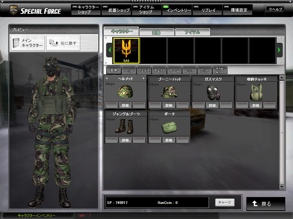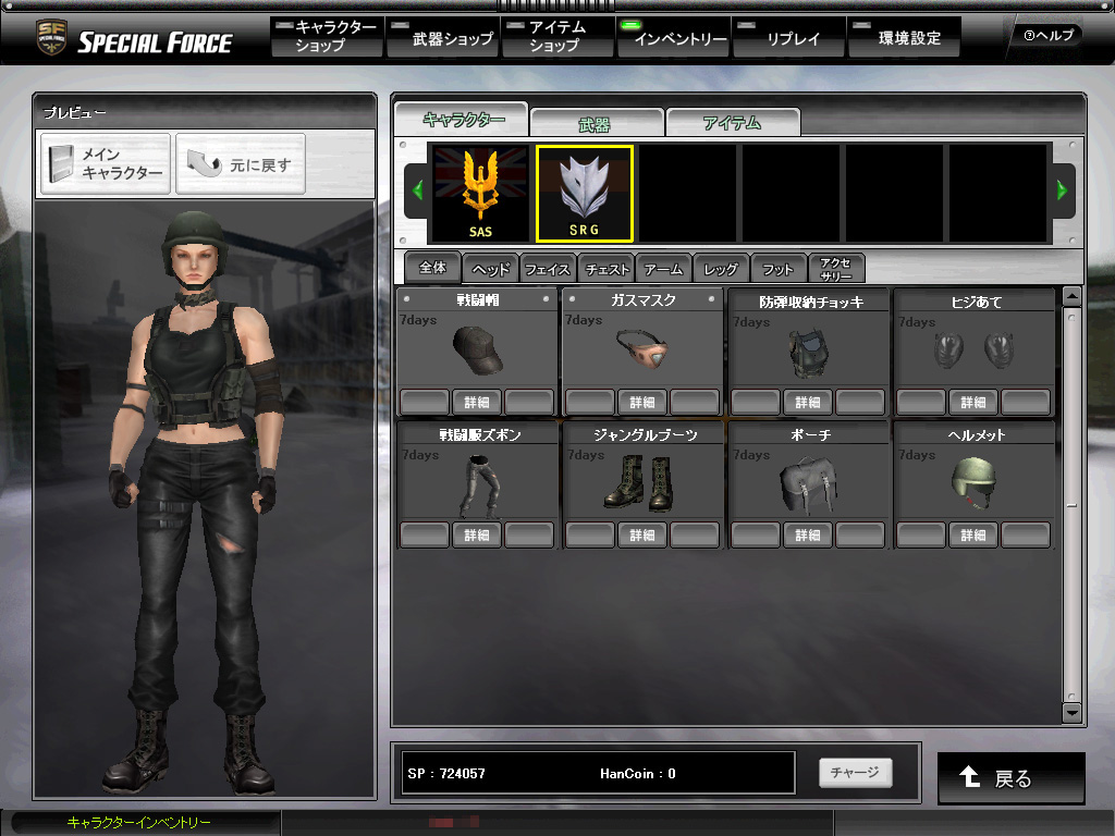 ゲームをスタートしたら,最初にしなければならないのは「自分の分身」を作ること。プレイキャラクターは,「SRG」「SAS」「DELTA FORCE」「SPETSNAZ」という四つの特殊部隊から,一つを選ぶことになる。といっても,一度選んだらずっとそのままのキャラクターしか使えないわけではなく,一つのアカウントで複数のキャラクターを所有して使い分けることも可能だ。