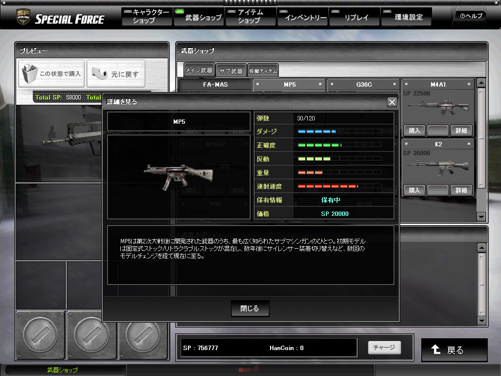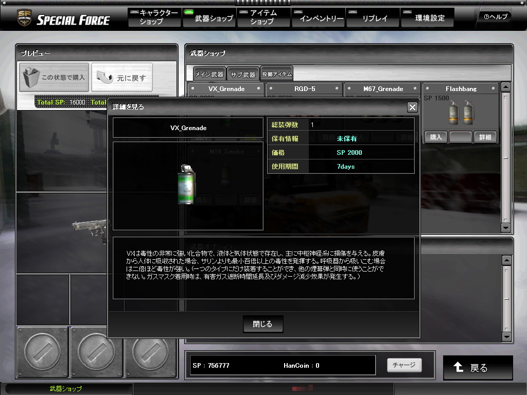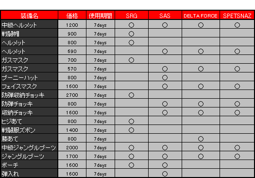 ※P90,Steyr-AUG,FA-MAS,RGD-5,VX Grenadeは11月30日に追加された新装備品です