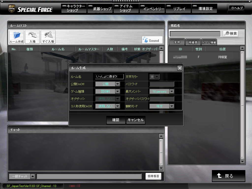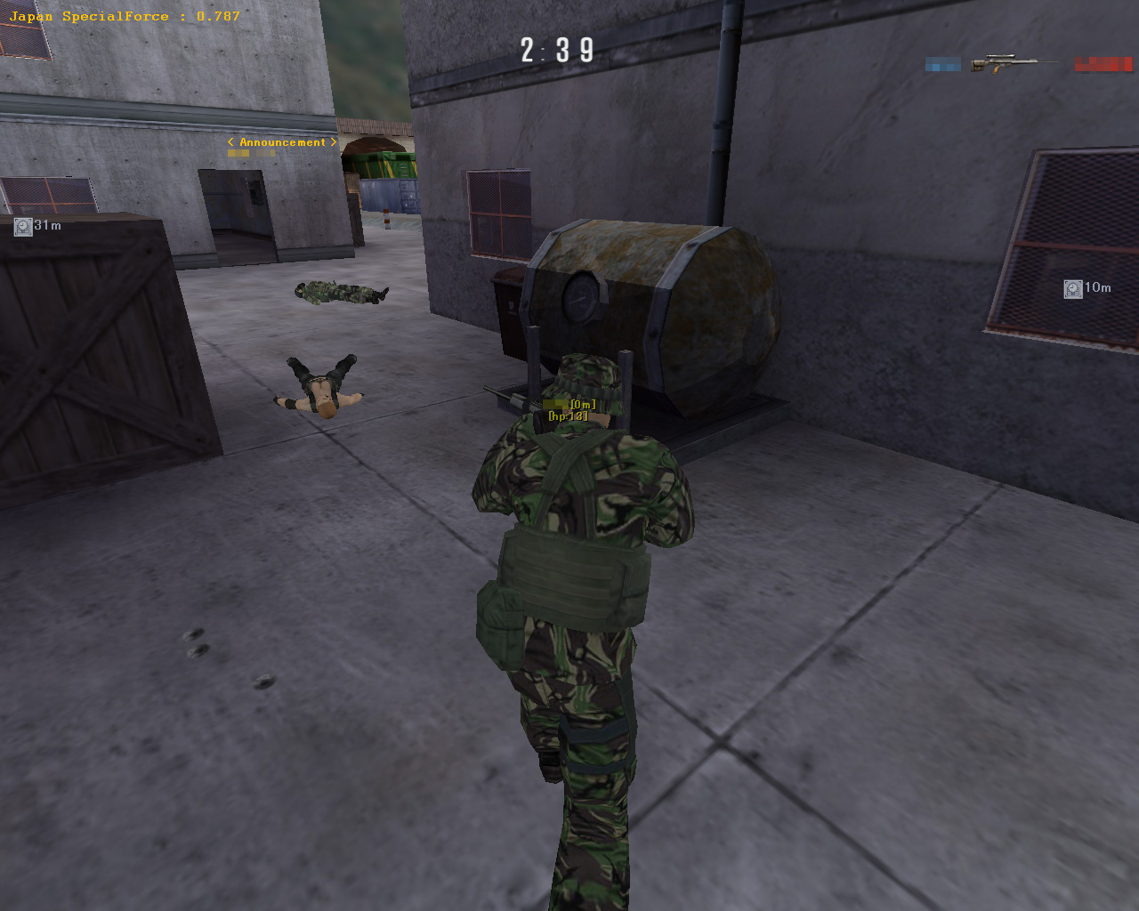 参加人数は2名から16名。あらかじめ決められた人数(ルームマスターが設定可能)を倒せば勝利となる。自分以外はすべて敵なので,かなりシビアな展開となるだろう。積極的に前に飛び出してポイントを稼ぎまくるのもいいし,こっそり隠れて狙撃に勤しんでみるのも面白い。敵を見たら,容赦せず引き金を引くのだ!