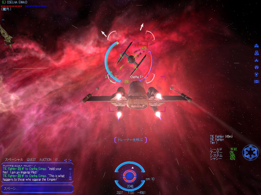 今苦労しているのは,アイテム名とスキル名です。翻訳で重要なのは,"プレイのしやすさ" "スター・ウォーズらしさ" "語感の格好良さ"の三つです。このバランスをどうとっていくかで,頭を悩ませているんですよ。制作側としての落としどころはあるんですが,せっかくβテストをやるので,βテスター達の意見を聞いて,彼らに用語に魂を吹き込んでもらってからオープンしようと思ってます。