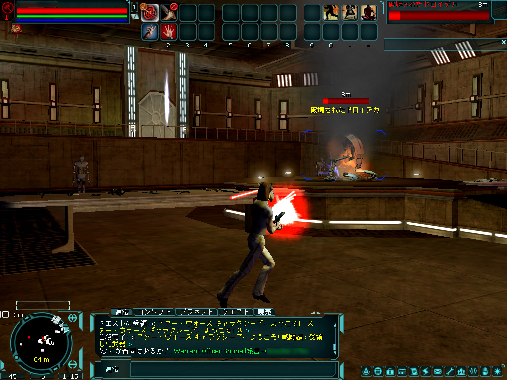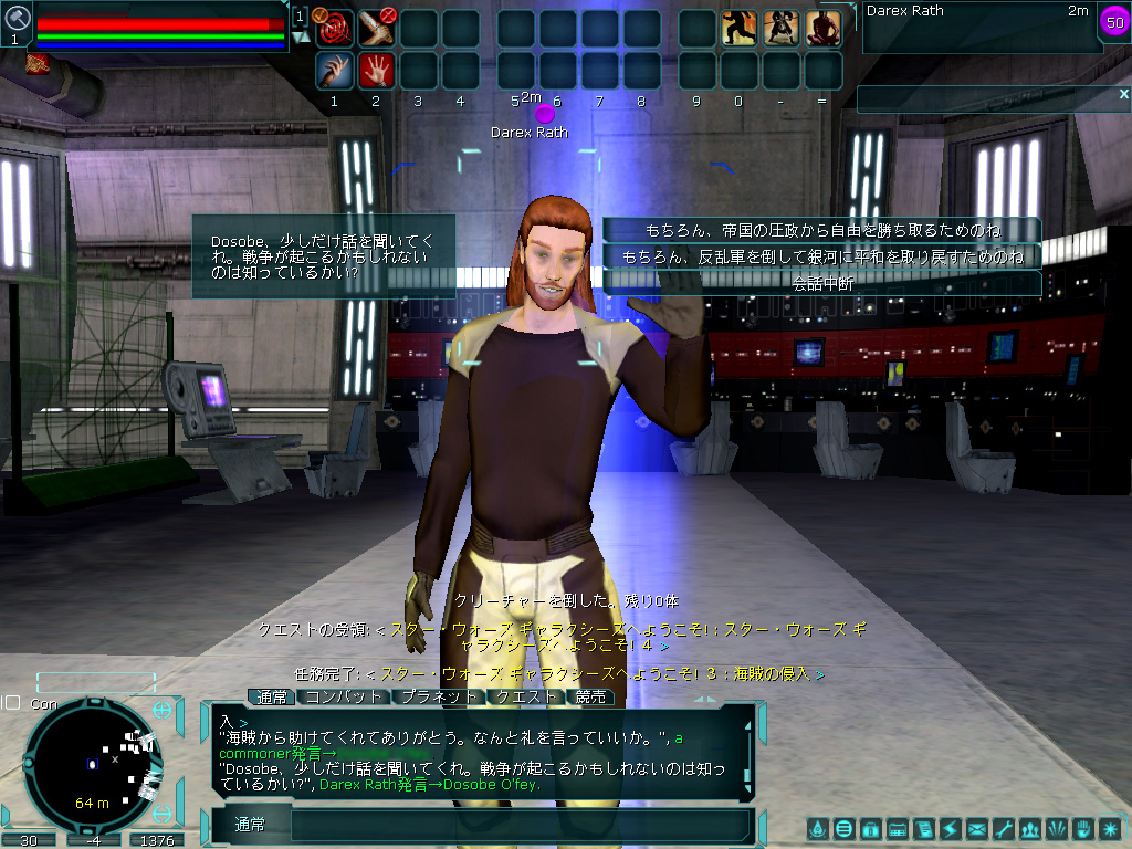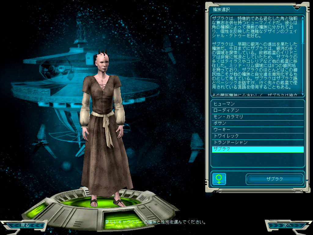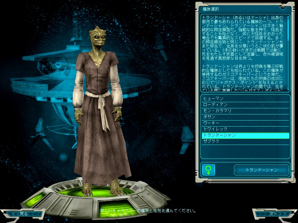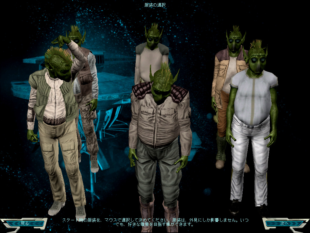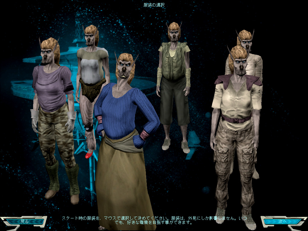 日本のプレイヤーが遊ぶための世界としては(2005年6月現在)"Japan-Katana"と"Japan-Harla"の二つが用意されている。ほぼ同じゲーム世界が広がっているので,どちらを選んでも問題ないだろう。ただし,すでにSWGをプレイしている友人がいて,その人と一緒に遊びたい場合は,同じギャラクシーにキャラクターを作る必要がある。現状では,キャラクターをギャラクシー間で移動できないので,注意しよう。