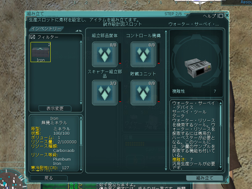 いま掘り出したものと同じメタルが27ユニットあれば,「ウォーター・サーベイ・デバイス」を作成可能だ。