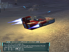 ちなみにビークルは,長時間使用していると徐々に壊れてくる。次第に煙を噴き上げるようになり最後には爆発してしまうので,定期的に修理する必要がある。修理するには,町のどこかにあるパーキング・ガレージを探し,そこに近づいた状態でスピーダー自体からメニューを引き出し,「修理」を選ぶ。修理代を支払えば,コンディションは完全に回復する。