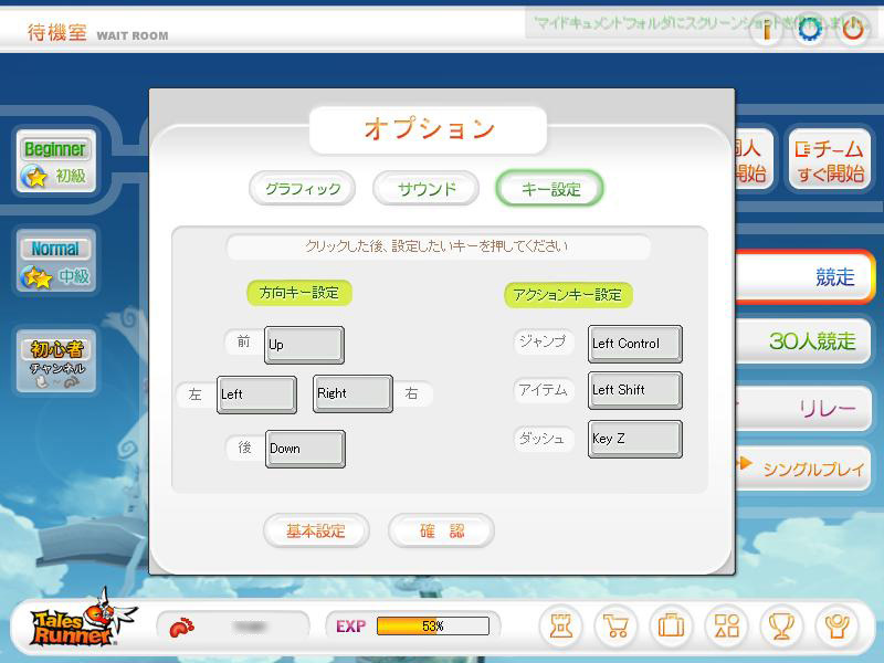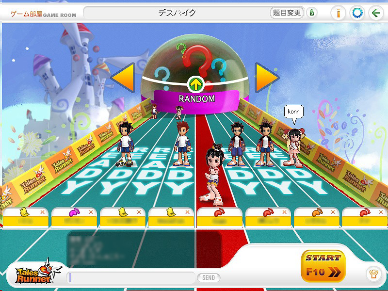 作成したばかりのキャラクターは「ヒヨコ」ランクなので,初心者チャンネルの部屋に入ってみよう。テイルズランナーには現在,「競争」「30人競争」「リレー」の三つのゲームモード,「トレーニング」「童話」「サバイバル」の三つのジャンル,そして計12のコースが用意されている。ここでは,中でも人気のコースをいくつか解説していこう。
