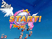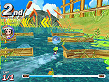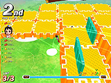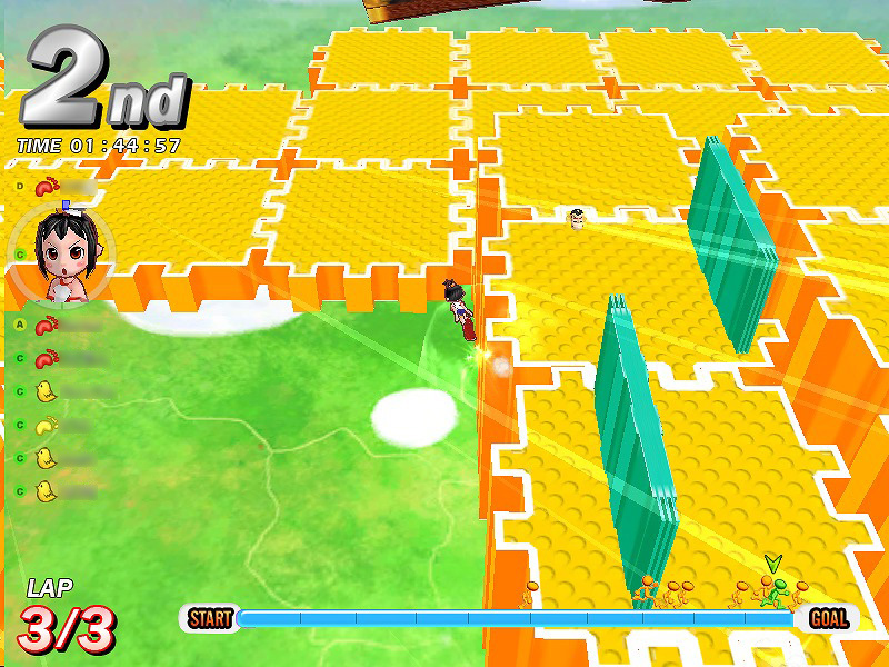 一番の難所は,細い橋の上を左右に移動する壁の地帯。普通に走っていると壁に押し出されコースアウトしてしまうので,ジャンプを駆使して壁を跳び越し,コースアウトしそうになったら2段ジャンプで戻るようにするといい。