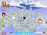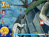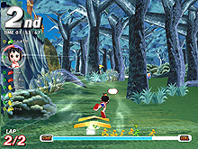 本作では,時にブロックを跳び渡り,川を泳ぎ,スキーで滑り降り,蔓を登り……といったように,多彩なアクションが楽しめる。またテイルズランナーという名前どおり,童話をモチーフにしたコースが用意されている点も特徴的だ。グリム童話から日本の昔話まで,おなじみのストーリーに沿ったコンセプトが用意されている。中には,クリアのための条件が用意されているコースもあるので,攻略法を探すことも重要な要素の一つだ。