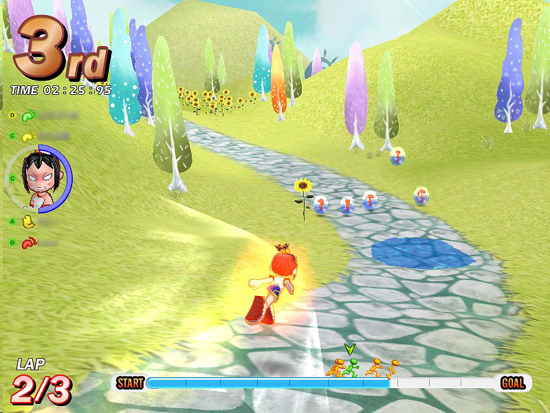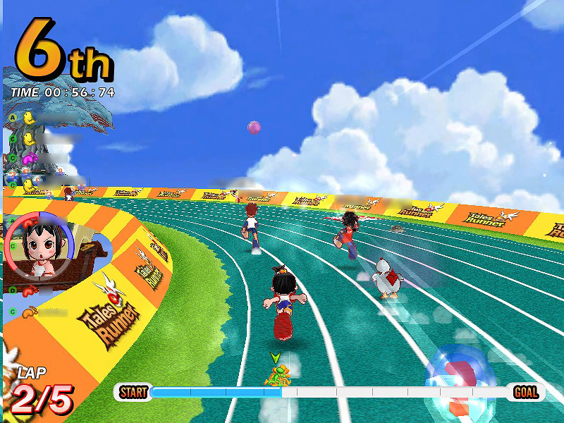 テイルズランナーはレースゲームである。説明するまでもなく,レースゲームというのは,車やカートなどを運転し,サーキットや溶岩のお城,ときには虹の上なんかを走ってゴールを目指し,ラップタイムを競うというゲームジャンルだ。しかしながら本作と,今キミの頭になんとなく浮かんだであろうレースゲームとでは,一つ大きな違いがある。それは,本作のレースの種目がカーレースではなく,(主に)徒競走だという点だ。
