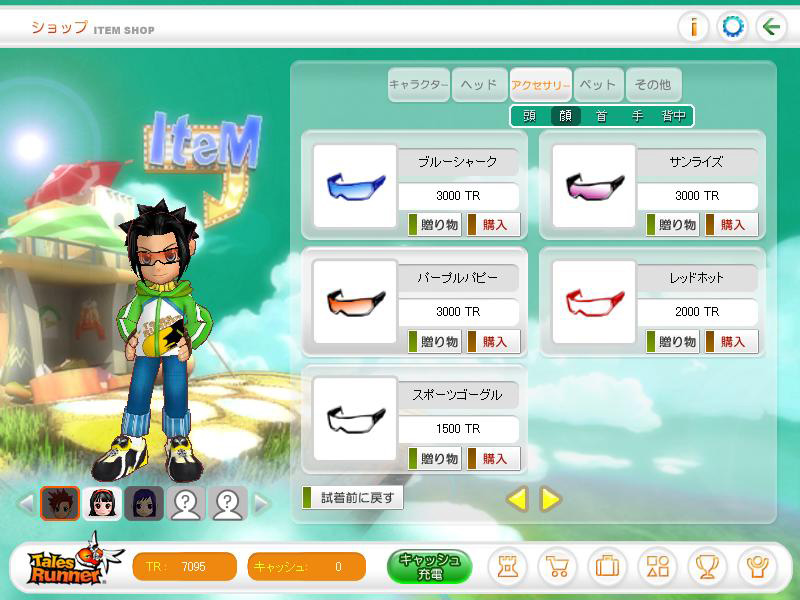 TRマネーは,ゲーム内ショップで新キャラクターや装備を買うのに使用する。キャラクター/装備は,現時点では性能差はなく,単なる見た目の違いにすぎないのだが,やはり自分でカスタマイズしたキャラクターには愛着が湧くというもの。TRマネーを貯めて,お好みのチョイスでキャラクターをコーディネートしていこう。