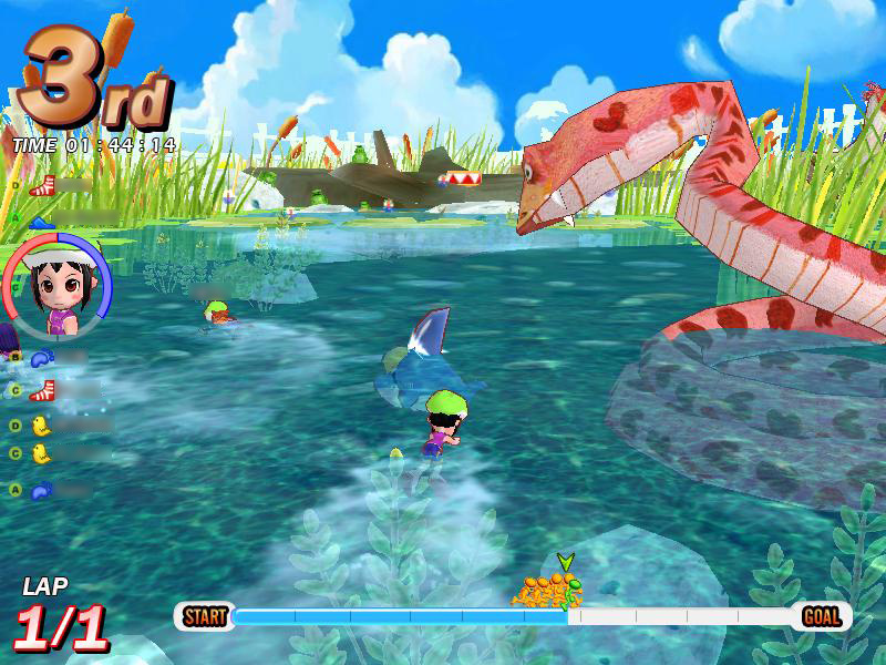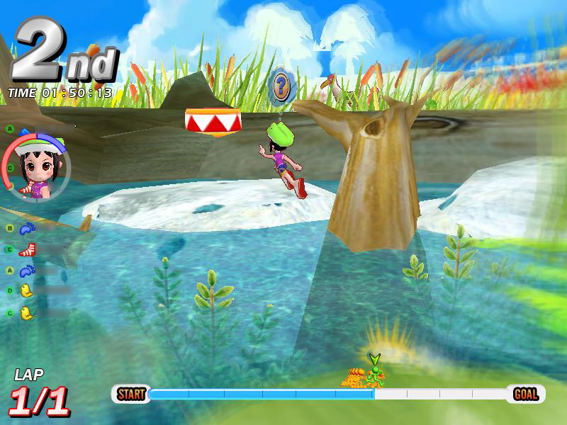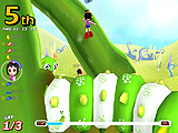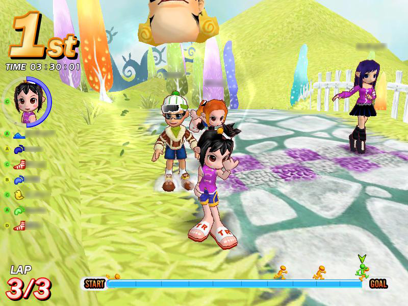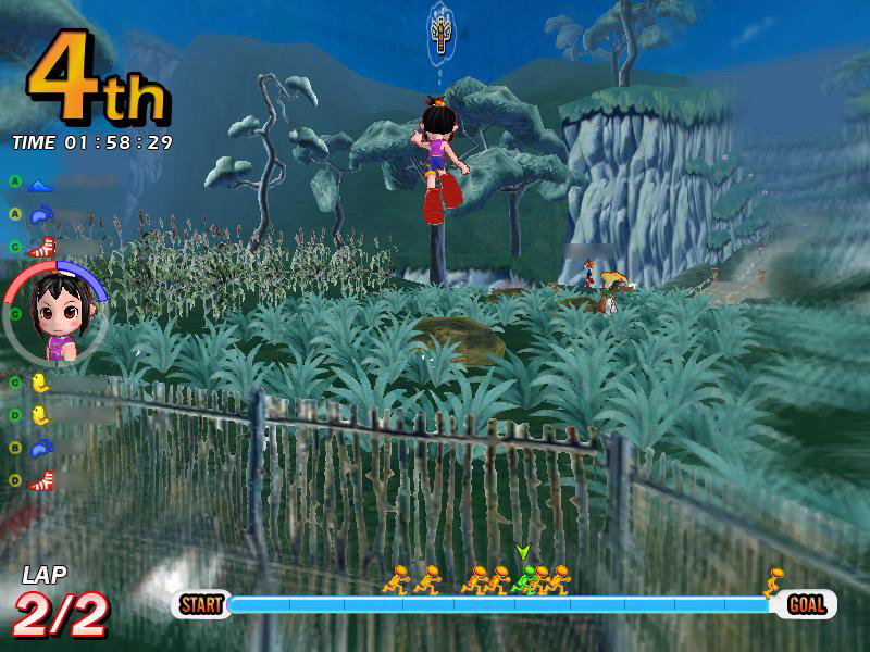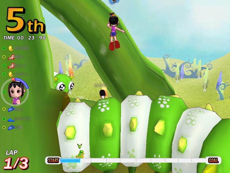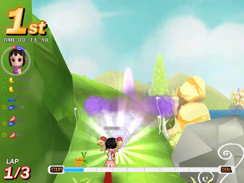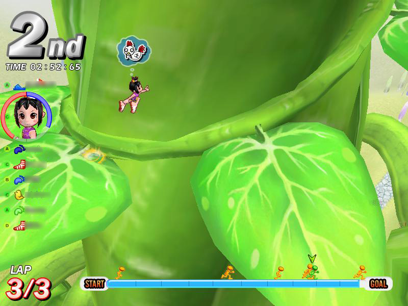 「ジャックと豆の木」は,細い小道が連続するコース。それだけに,ほかのプレイヤーからの妨害も多発する。後続グループに埋もれてしまうと,足の引っ張り合いでなかなか抜け出せなくなってしまう。スタート時はとくに気を使い,綺麗なスタートダッシュで,アドバンテージを稼いでおきたい。