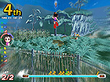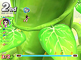 地形としては,葉っぱが階段状に並んでいる場所が難所。2段ジャンプで一気に飛び越そうとすると,まず落っこちてしまう。ここはノーマルジャンプを使い,タイミングよく1段1段クリアしていくのがポイント。あせりは禁物である。