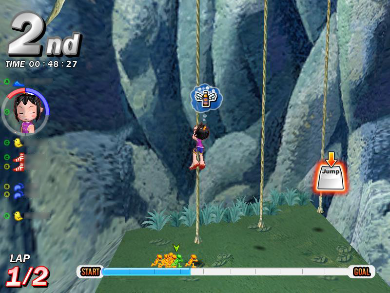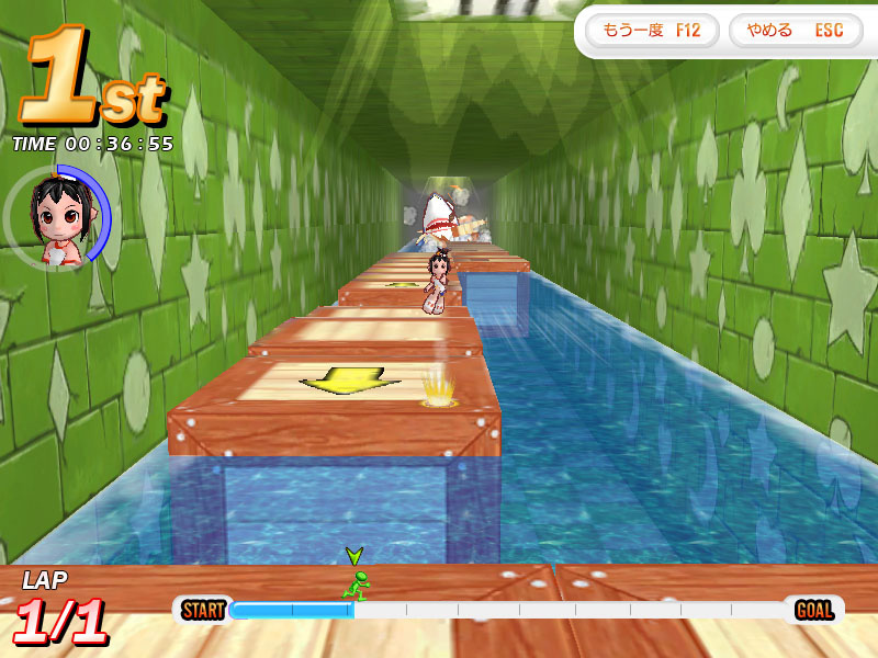 練習するときは30人競争の「トカゲオジサン〜初級」がオススメ。スタートダッシュからスタミナ切れになるまでに,うまくいけば後方のトカゲオジサンが見えなくなるところまで引き離すことが可能だ。2回目のジャンプのタイミングが少々難しいが,何度も練習してぜひ習得してほしい。