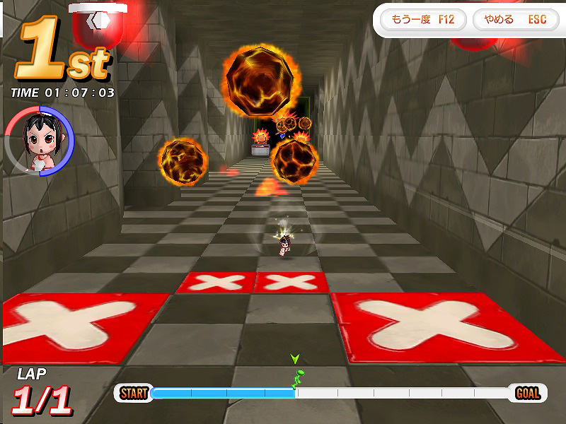 踏み合いに熱くなりすぎて,トラップに足元をすくわれるの図。妨害に熱を入れすぎてもタイムは縮まらないので,「踏み付け」はあくまで駆け引きの一つと考え,基本は「走り」で勝負しよう |