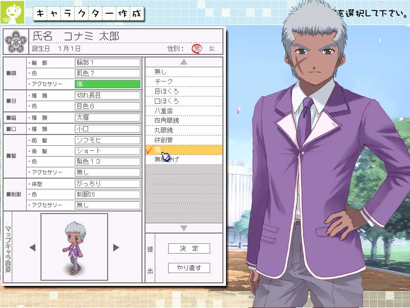 | ほほに大きな傷を付ける,なんてことも可能。ワイルドな体育会系のキャラも作成できる |