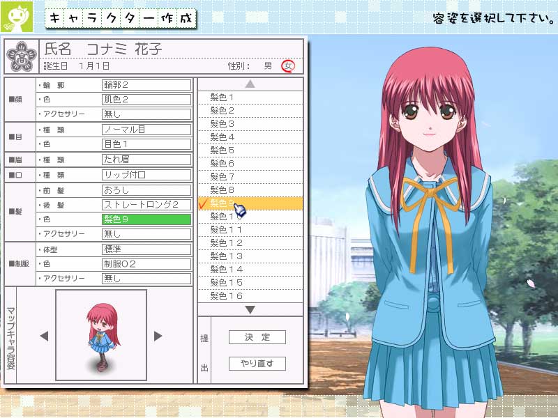| 清純派タイプから,こういったお嬢様タイプまで,いろんなタイプの女の子が作成 |