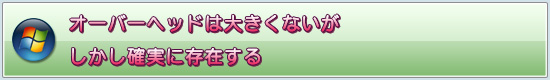 以上,長々と「Windows Vistaで変わったこと」を説明してきたわけだが,WDDMやDirectXの構造が大きく変わったことで,Windows XPよりも「オーバーヘッド」と呼ばれる直接/間接的な負荷は大きくなっているように思える。Windows XPのDirectX 9は一つのゲームがGPUの機能を独り占めする状態に近かったが,Windows Vistaではドライバ側でGPUを仮想化するなどの余計な処理が間に挟まっているからだ。