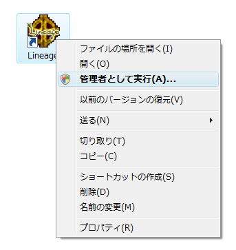 デスクトップのショートカットを右クリックし「管理者として実行」を選ぶと起動するゲームは多い |