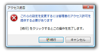 上の画面で設定を変更し,[OK]ボタンを押すと左のようなメッセージが出る。ここは「続行」を選ぼう |