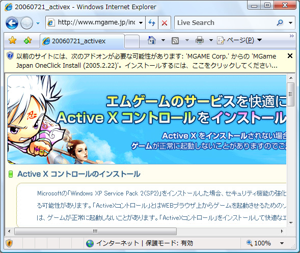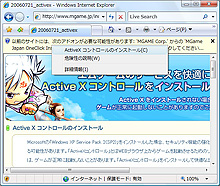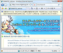| エムゲームのタイトルなど,ブラウザ上からログインし起動するタイプでは,画面のようにActiveXのアドオンをインストールする旨が表示される(左)。ここは指示に従ってインストールしよう(右) |