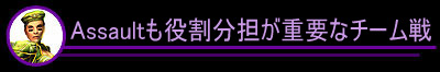 | 攻撃と守備に分かれて戦うAssault。右上に細かい任務内容が表示され,次の目標物の方向も矢印で表示される |