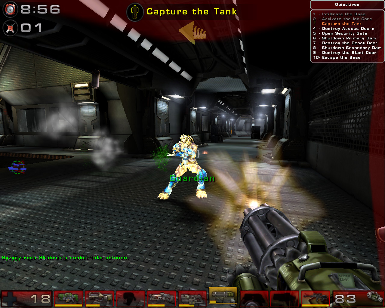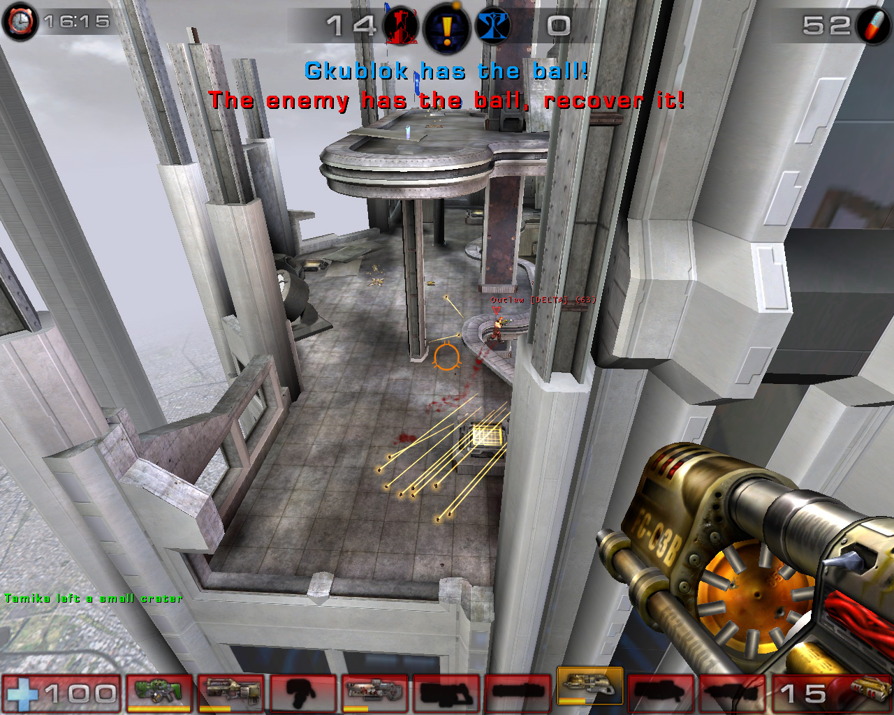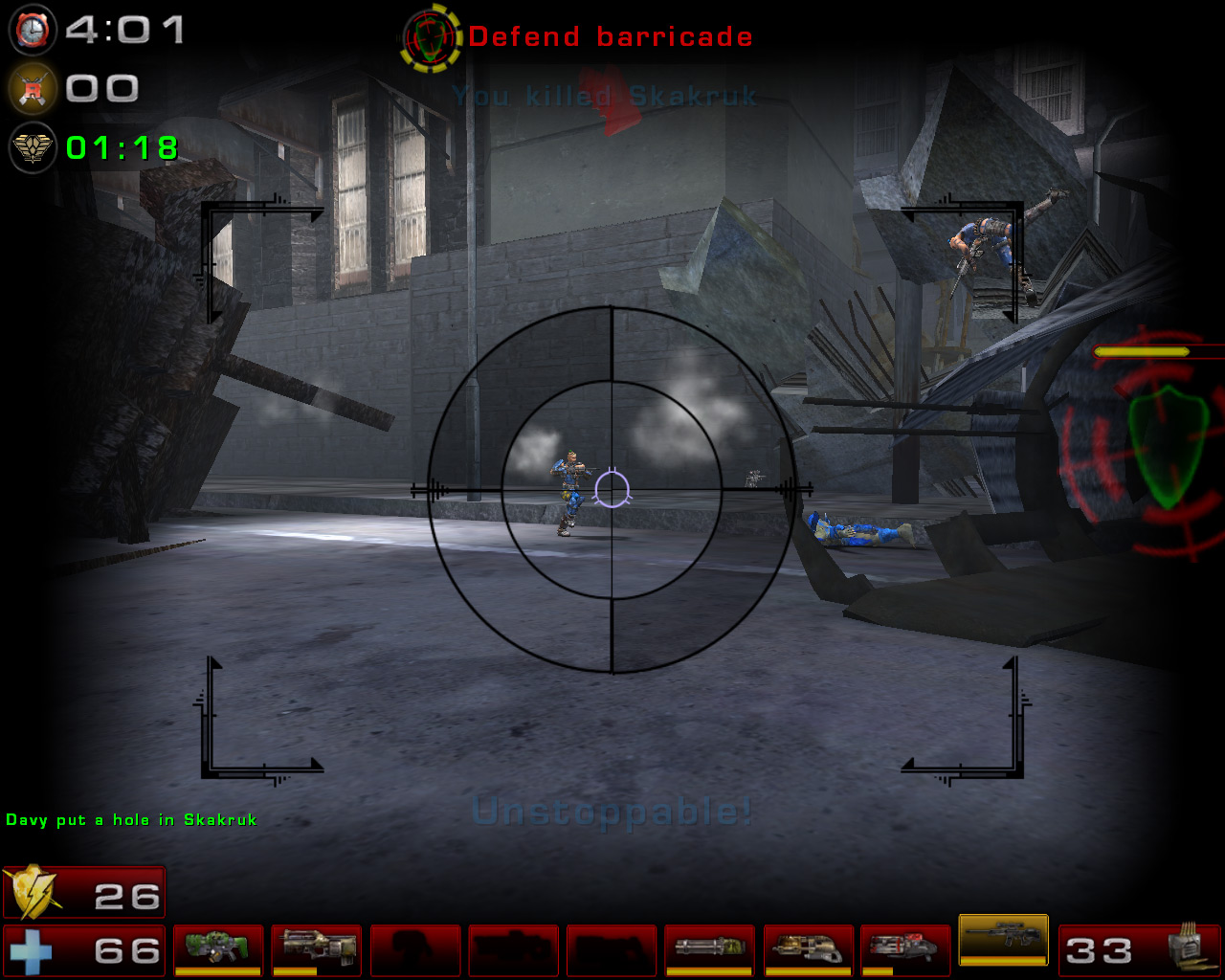 Team DeathMatchやCapture the Flagについては,これまでに触れたことがあるので,割愛させていただく。ひと言だけポイントを挙げるとすれば,チーム戦の基礎,フォア・ザ・チームの精神を忘れないことである。味方の掩護はもちろん,時には味方を生かすために犠牲になることもいとわない覚悟でプレイすれば,おのずとチームの得点は上がっていくのだ。