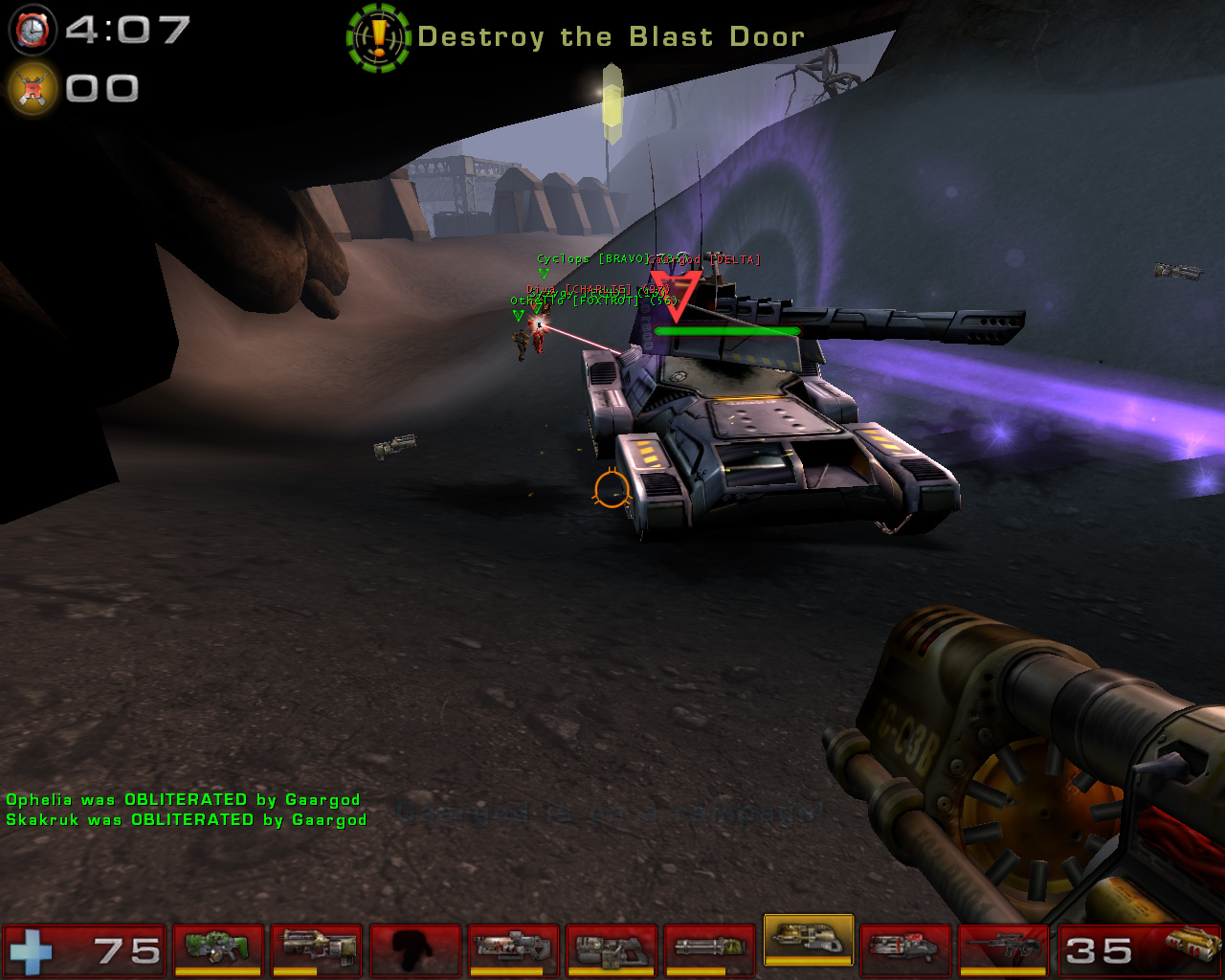 | ビークルも加えた大乱戦を展開できるゲームモード"Onslaught"。ビークルならではのひき逃げ攻撃(?)もあり |