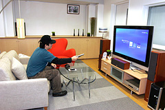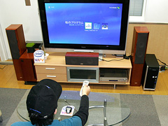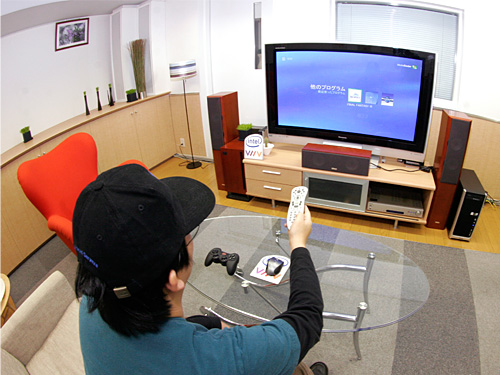 そして何より,リモコンとUIによって,PCディスプレイとの距離という制約から解放されるのが大きい。PC用ディスプレイでアイコンを見るには,どんなに離れても1mが限界と思われるが,Viiv対応PCなら,リビングに置いて大きなテレビと接続し,大きなフォントのUIをリモコンで操作できるようになる。そう,Viivは,接続先となるディスプレイの制約を取り払い,ゲーマーを狭いPCデスクから解放してくれる存在でもあるのだ。