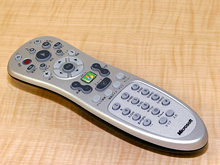 | リモコンは,後述する「Windows XP Media Center Edition 2005」の別売りオプション。この中央にある,「スタート」と書かれた緑色のボタンを押すことで,電源のオン/オフが行える |