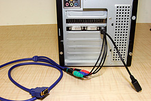 グラフィックスカード上の高解像度テレビ出力からコンポーネントで出力し,さらにそれをD端子に変換。そのうえでテレビとアナログ接続を行った |