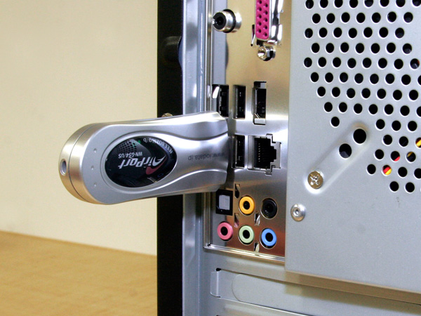今回は,USB接続のIEEE 802.11g無線LANアダプタを試してみたが,これが思いのほか快適。サーバー型のオンラインゲームなら,無線LAN環境でも,何の問題もなくプレイできるので,リビングにPCを置くときはご一考を