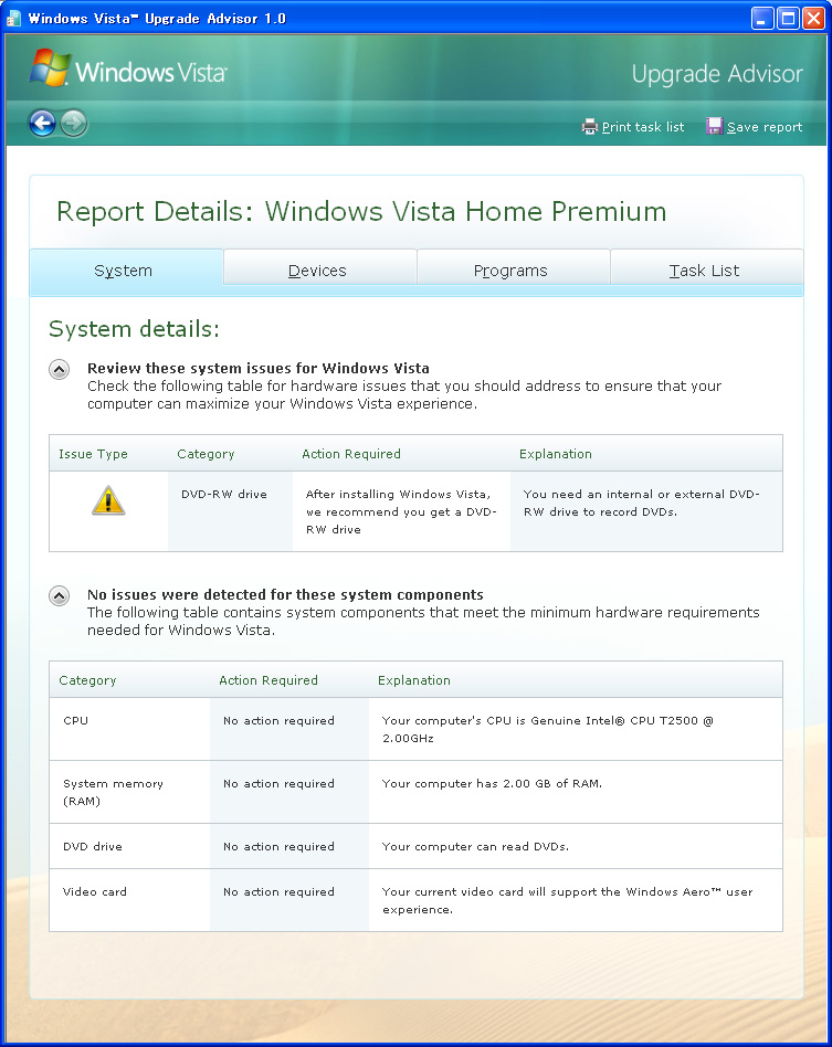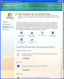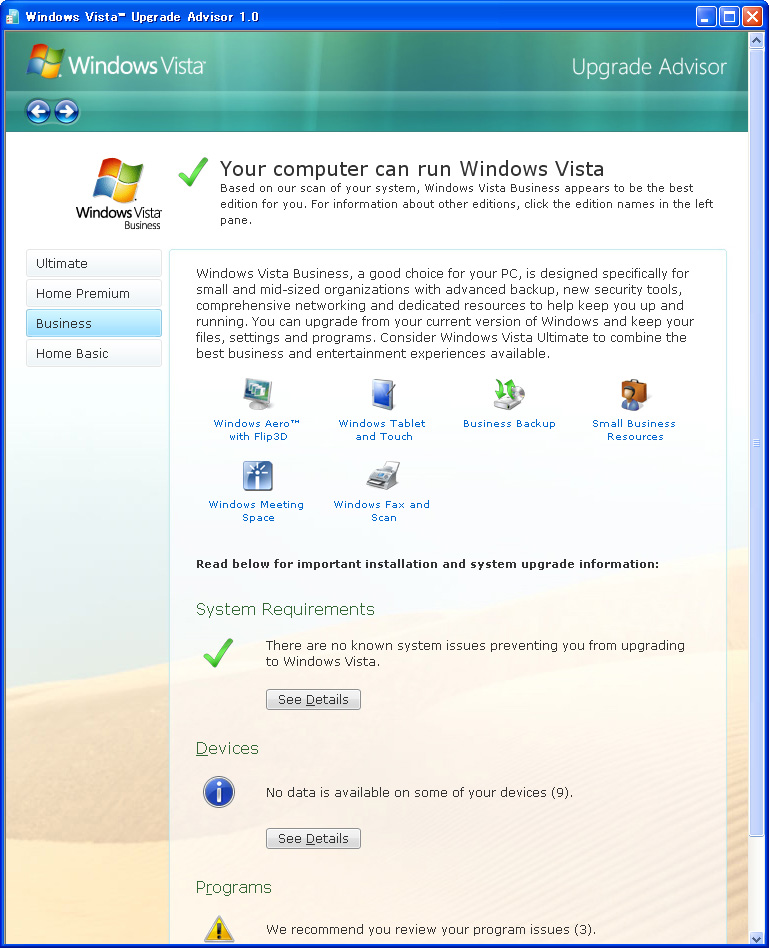 なお,動作する手持ちのPCを構成するデバイスがWindows Vistaに対応しているのかは,Microsoftが提供するソフトウェア「Windows Vista Upgrade Advisor」を利用すると確認できる。