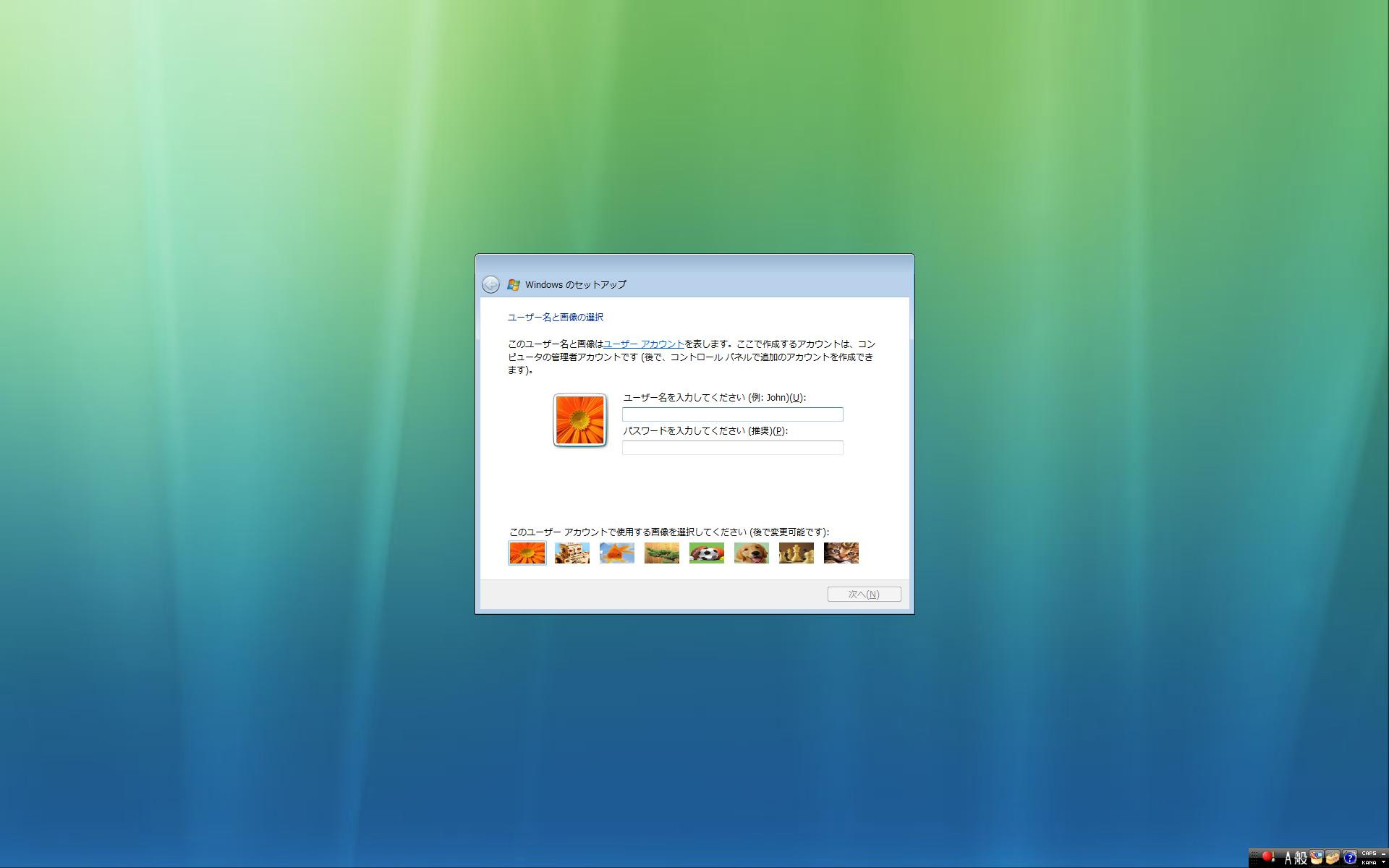 (12)これでインストールそのものは終了だ。Windows Vistaが起動し,ユーザー名やパスワードを設定,続くウィンドウでPC名を入力する |