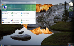 (13)初回起動時のデスクトップ。PCのスペックによって,半透明処理が行われなかったりもするが,おおむねこのような画面になるはずだ |
