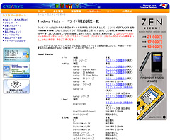 | Creative Technology: | Windows Vista - ドライバ対応状況一覧 |