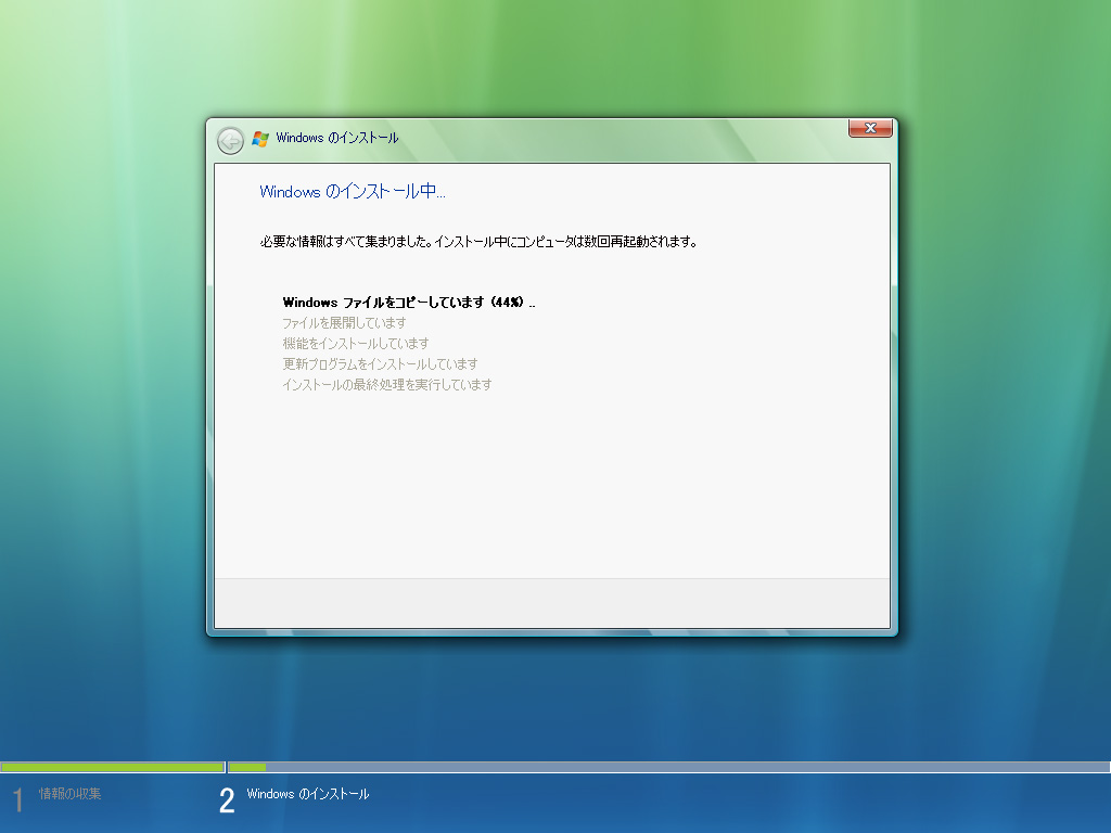 (11)「Windowsのインストール中…」というウィンドウが出たら,しばらく待つ。途中,何度か自動的に再起動するが,とくにユーザー側からの操作は必要ない |