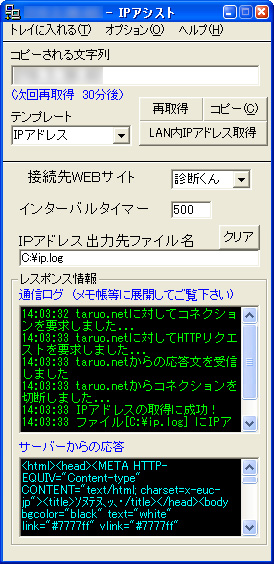 | 左が確認くん,右がIPアシストのスクリーンショット。手っ取り早くグローバルIPアドレスを確認したいなら確認くんでいいだろう。一方,グローバルIPアドレスを最小動作で頻繁にチェックすることになるなら,ショートカットからの一発起動も可能なIPアシストが便利 |