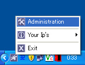 タスクバーのアイコンを右クリックするとポップアップするメニューから「Administration」を選択。するとWebブラウザが起動し,「Superadminログイン」というログイン画面が表示されるはずだ。先刻控えておいた「SAdmin UserName」と「SAdmin Password」をそれぞれ「ユーザー名」と「パスワード」に入力し,「Login」ボタンを押す。