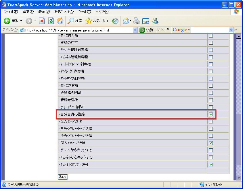 なお「リストの公開」にチェックを入れておくと,誰でも利用できる(パブリックな)TeamSpeak 2サーバーとして扱われるので,管理者が意図しない人からアクセスされる可能性が生まれる。本稿で目指す「ゲームを一緒にプレイする仲間内でボイスチャットを行う」という目標から外れるので,ここは忘れずにチェックを外しておきたい。設定が終わったら,「Save」ボタンを押す。