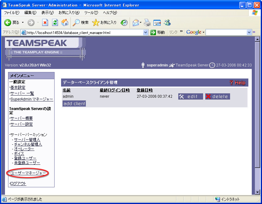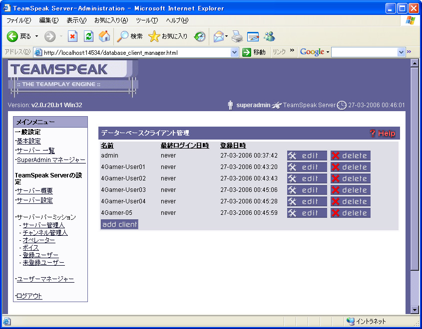 (A)TeamSpeak 2サーバー側でユーザーアカウントをすべて用意する場合