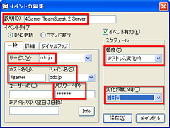 - TeamSpeak 2サーバーのグローバルIPアドレス,または「(ユーザーが登録したサブドメイン).ddo.jp」というアドレス