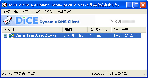 TeamSpeak 2サーバーソフトを起動するたびに,仲間の全員にグローバルIPアドレスを通知すればこの問題は回避できるが,それはかなり面倒である。