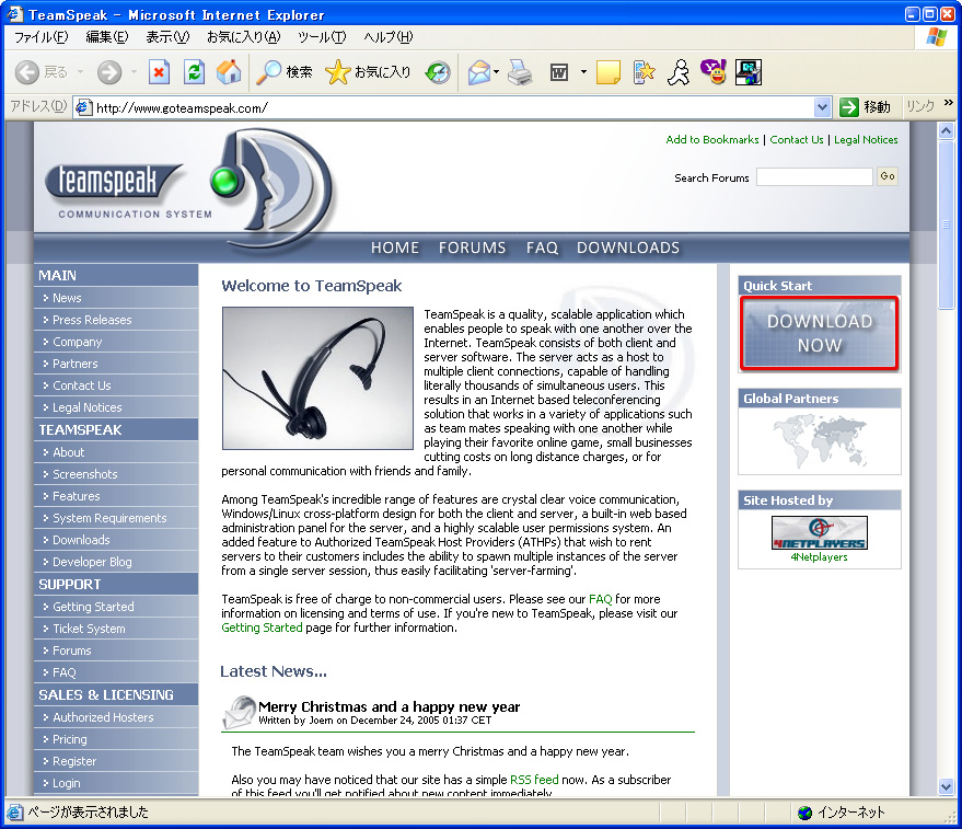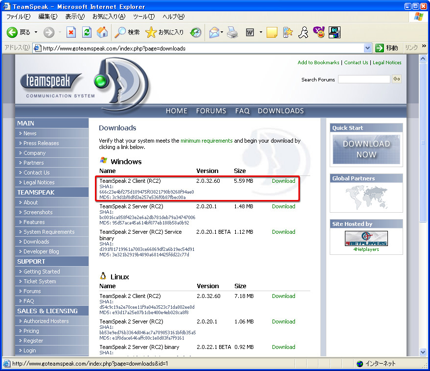 TeamSpeak 2のクライアントソフトをインストールする